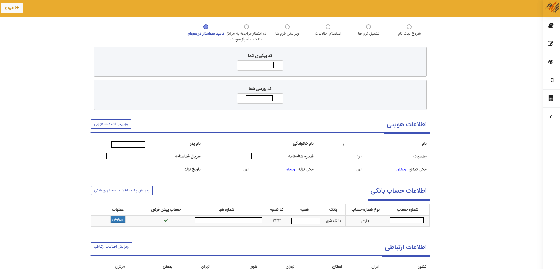 (در صورتیکه احراز هویت با موفقیت انجام شود، بعد از دریافت پیامک احراز هویت، کد بورسی نیز در قالب پیامک ارسال خواهد شد)